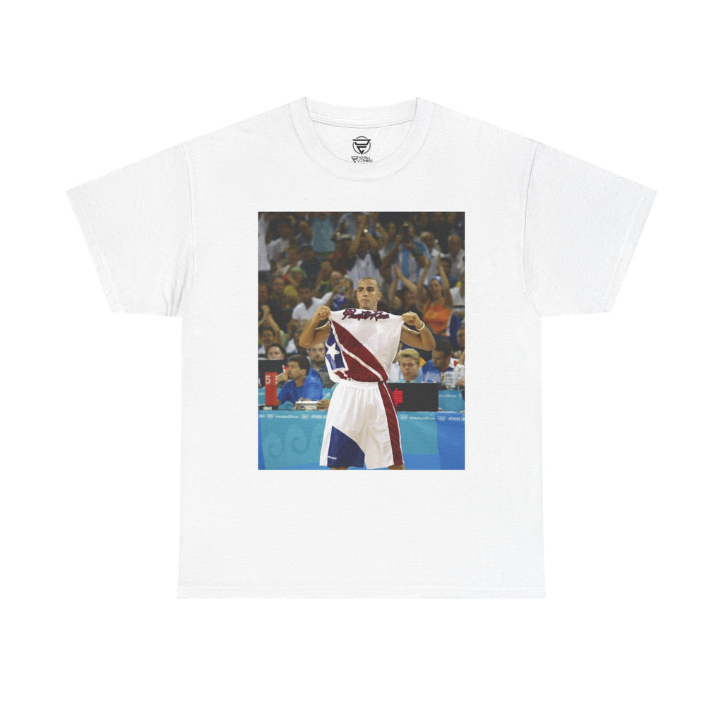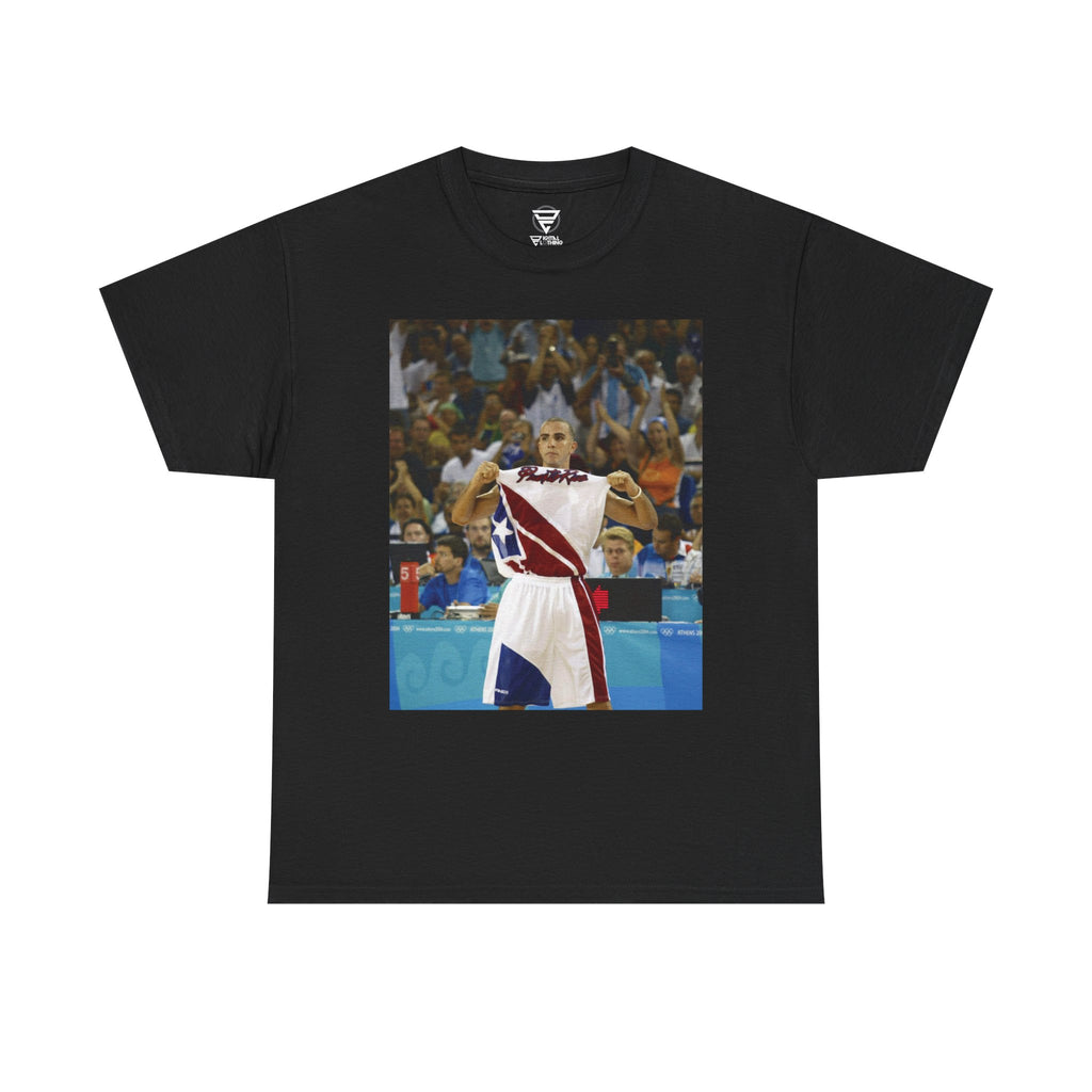 ATENAS - 15 DE AGOSTO: Carlos Arroyo de Puerto Rico celebra durante el partido contra el Dream Team de los EE. UU. el 15 de agosto de 2004 durante los Juegos Olímpicos de Atenas 2004. Puerto Rico ganó 92-73 para ser la primera vez que el Dream Team de los EU caia derrotado desde que empezaron a jugar con las estrellas de NBA.
