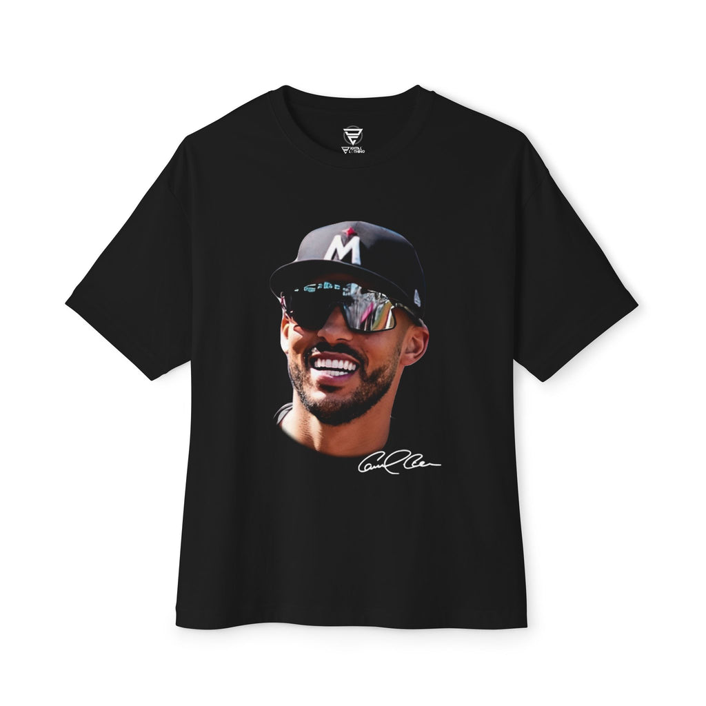 This MLB Player Carlos Correa Big Face Design T-Shirt exudes sporty vibes and is perfect for baseball fans. It has a relaxed fit and dropped shoulders for added comfort. Ideal for casual wear or as a gift for sports enthusiasts, especially during baseball season or special events.